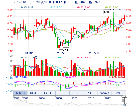| 今 開(kāi): | 8.20 | 成交量: | 8.46萬(wàn)手 | 振 幅: | 2.54% |