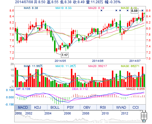 | 今 開: | 8.50 | 成交量: | 11.28萬手 | 振 幅: | 2.00% |