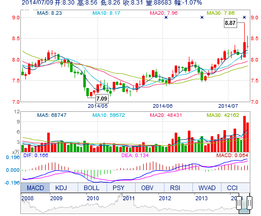 今 開: | 8.30 | 成交量: | 8.87萬手 | 振 幅: | 3.57% |