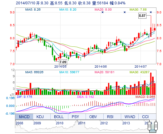 今 開: | 8.30 | 成交量: | 5.62萬手 | 振 幅: | 3.01% |