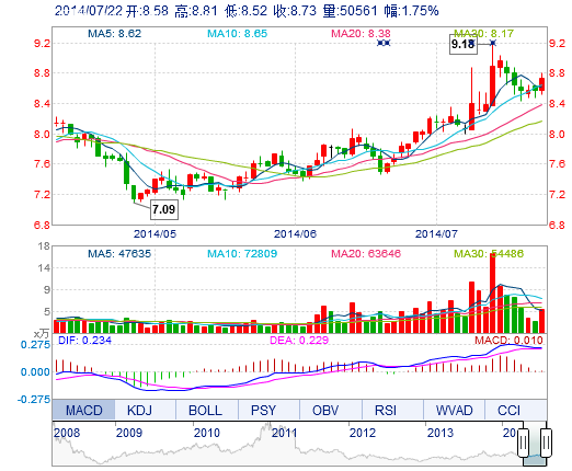 今 開(kāi): | 8.58 | 成交量: | 5.06萬(wàn)手 | 振 幅: | 3.38% |