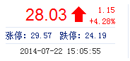 | 最 高: | 28.27 | 成交額: | 4.45億元 | 換手率: | 2.55% |