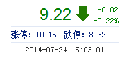 | 昨 收: | 9.24 | 流通市值: | 40.27億 | 市盈率TTM: | -- |