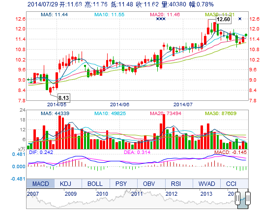 | 最 高: | 11.76 | 成交額: | 4683.95萬(wàn)元 | 換手率: | 2.03% |