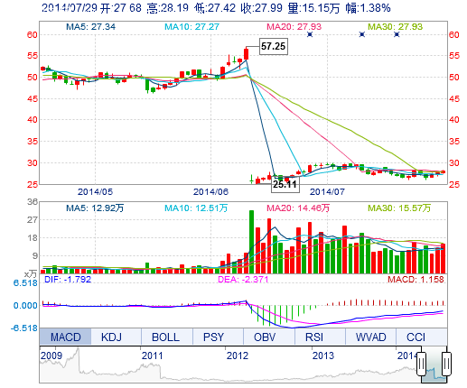 | 最 低: | 27.42 | 總市值: | 183.29億 | 市凈率: | 5.01 |