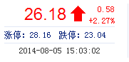 | 最 高: | 26.20 | 成交額: | 8535.39萬(wàn)元 | 換手率: | 1.91% |