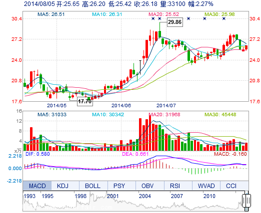| 最 低: | 25.42 | 總市值: | 45.47億 | 市凈率: | 13.15 |