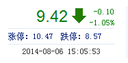 今開: 9.41 成交量: 24.12萬手 振幅: 2.52% 最高: 9.60 成交額: 2.27億元 換手率: 2.71% 最低: 9.36 總市值: 83.94億 市凈率: 3.14 昨收: 9.52 流通市值: 83...