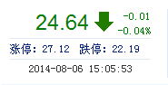 | 今 開: | 24.61 | 成交量: | 2.85萬(wàn)手 | 振 幅: | 1.01% |