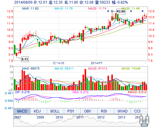 | 今 開: | 12.01 | 成交量: | 5.92萬手 | 振 幅: | 4.02% |