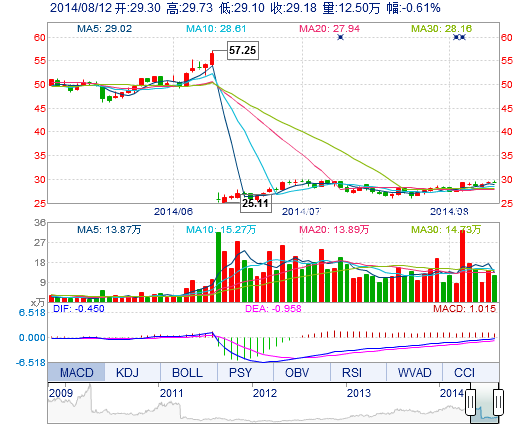 | 今 開(kāi): | 29.30 | 成交量: | 12.50萬(wàn)手 | 振 幅: | 2.15% |