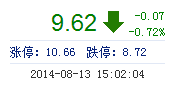 | 最 高: | 9.74 | 成交額: | 1.38億元 | 換手率: | 3.29% |