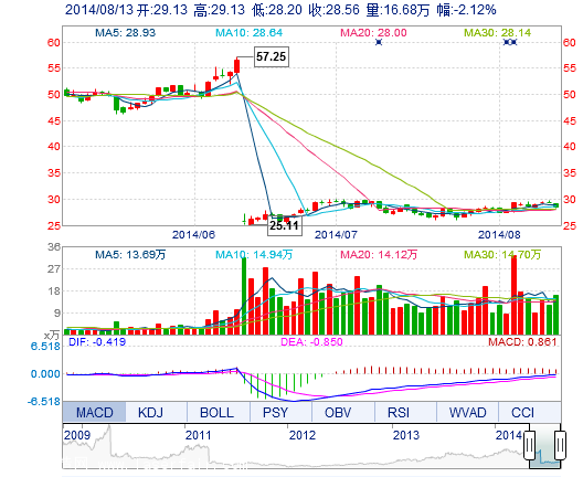 | 最 低: | 28.20 | 總市值: | 187.03億 | 市凈率: | 11.00 |