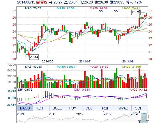 | 最 低: | 26.20 | 總市值: | 171.86億 | 市凈率: | 9.45 |