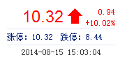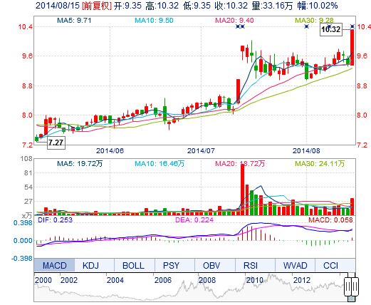 | 最 高: | 10.32 | 成交額: | 3.38億元 | 換手率: | 7.59% |