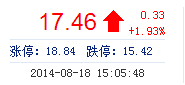 | 今 開: | 17.14 | 成交量: | 4.14萬手 | 振 幅: | 2.34% |