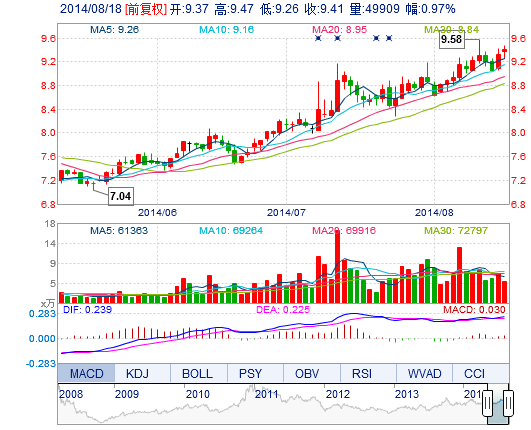 今開: 9.37 成交量: 4.99萬手 振幅: 2.25% 最高: 9.47 成交額: 4672.08萬元 換手率: 1.82% 最低: 9.26 總市值: 26.82億 市凈率: 4.18 昨收: 9.32 流通市值: ...