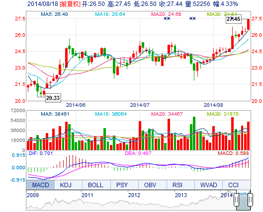 | 最 高: | 27.45 | 成交額: | 1.42億元 | 換手率: | 1.00% |