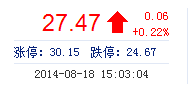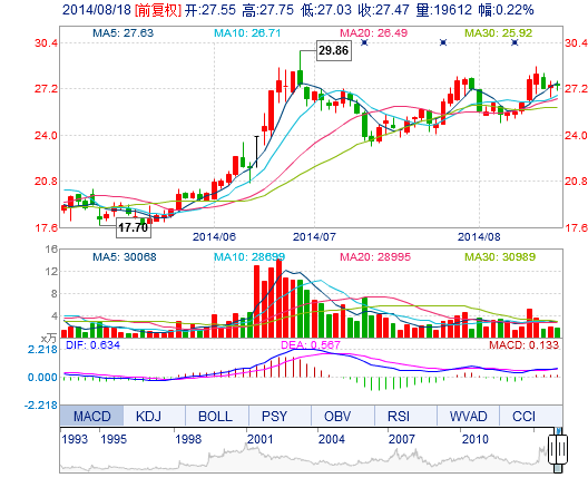 | 今 開: | 27.55 | 成交量: | 1.96萬手 | 振 幅: | 2.63% |