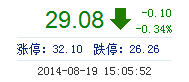 今開: 29.47 成交量: 14.45萬手 振幅: 1.95% 最高: 29.47 成交額: 4.21億元 換手率: 2.28% 最低: 28.90 總市值: 190.43億 市凈率: 11.20 昨收: 29.18 流通市...
