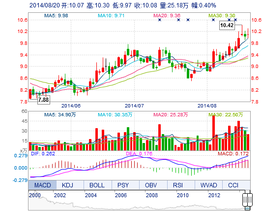 | 今 開: | 10.07 | 成交量: | 25.18萬手 | 振 幅: | 3.29% |