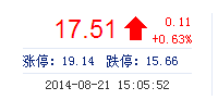 | 最 高: | 17.55 | 成交額: | 6975.77萬元 | 換手率: | 3.00% |