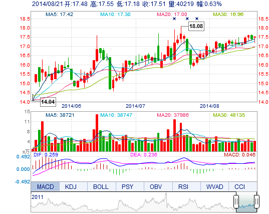 | 今 開: | 17.48 | 成交量: | 4.02萬手 | 振 幅: | 2.13% |