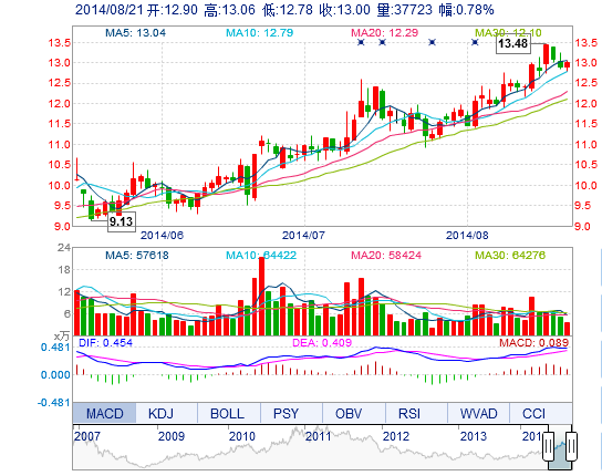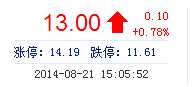 | 最 高: | 13.06 | 成交額: | 4871.28萬元 | 換手率: | 1.89% |