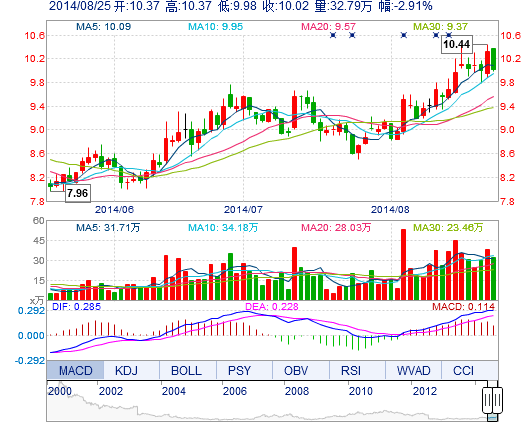 | 最 高: | 10.37 | 成交額: | 3.31億元 | 換手率: | 3.68% |