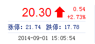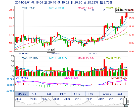 今開: 19.64 成交量: 25.23萬手 振幅: 4.76% 最高: 20.46 成交額: 5.05億元 換手率: 2.64% 最低: 19.52 總市值: 214.32億 市凈率: 5.82 昨收: 19.76 流通市值...