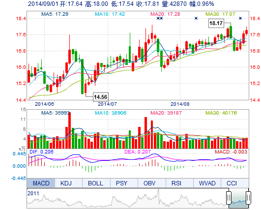 | 今 開: | 17.64 | 成交量: | 4.29萬手 | 振 幅: | 2.61% |