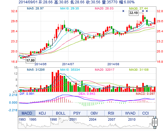 | 最 低: | 28.66 | 總市值: | 76.81億 | 市凈率: | 15.23 |