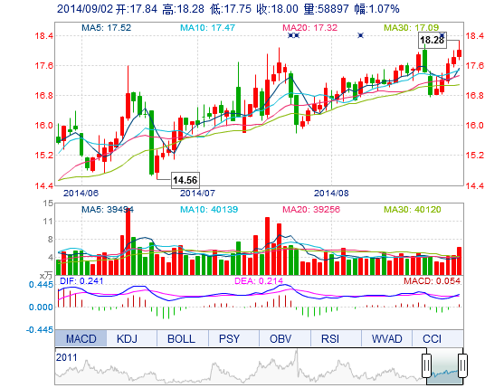 | 最 高: | 18.28 | 成交額: | 1.06億元 | 換手率: | 4.40% |