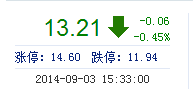 | 今 開: | 13.18 | 成交量: | 4.12萬手 | 振 幅: | 2.19% |