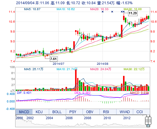 | 今 開: | 11.06 | 成交量: | 21.54萬手 | 振 幅: | 3.36% |