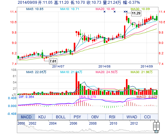 | 最 高: | 11.20 | 成交額: | 2.30億元 | 換手率: | 4.86% |