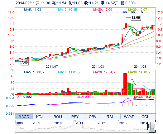 今開: 11.30 成交量: 14.62萬(wàn)手 振幅: 4.55% 最高: 11.54 成交額: 1.65億元 換手率: 5.30% 最低: 11.03 總市值: 31.95億 市凈率: 5.09 昨收: 11.21 流通市值...