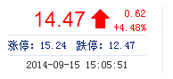 | 最 高: | 14.88 | 成交額: | 1.50億元 | 換手率: | 5.20% |