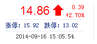 | 今 開: | 14.50 | 成交量: | 14.98萬(wàn)手 | 振 幅: | 8.64% |