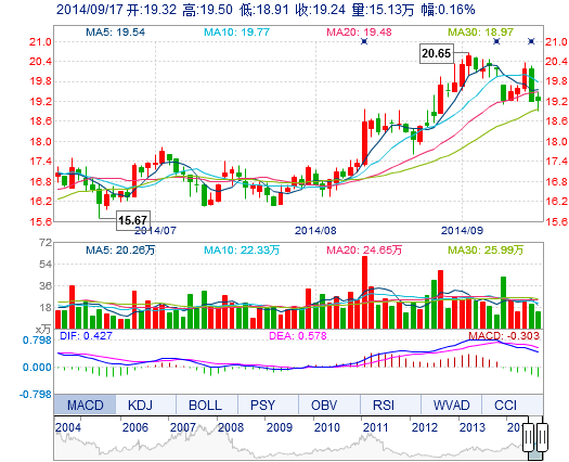 今開: 19.32 成交量: 15.13萬(wàn)手 振幅: 3.07% 最高: 19.50 成交額: 2.90億元 換手率: 1.58% 最低: 18.91 總市值: 203.13億 市凈率: 5.52 昨收: 19.21 流通市值...