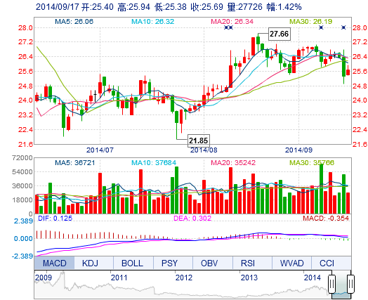 | 最 低: | 25.38 | 總市值: | 167.87億 | 市凈率: | 9.23 |