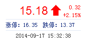| 最 高: | 15.18 | 成交額: | 1.08億元 | 換手率: | 3.64% |