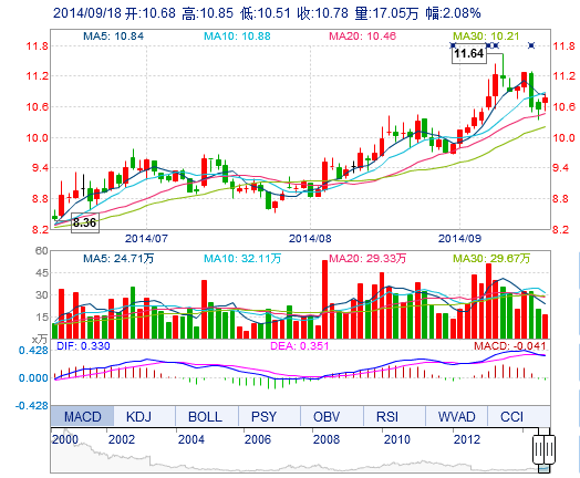 今開: 10.68 成交量: 17.05萬手 振幅: 3.22% 最高: 10.85 成交額: 1.83億元 換手率: 1.91% 最低: 10.51 總市值: 96.06億 市凈率: 3.55 昨收: 10.56 流通市值...