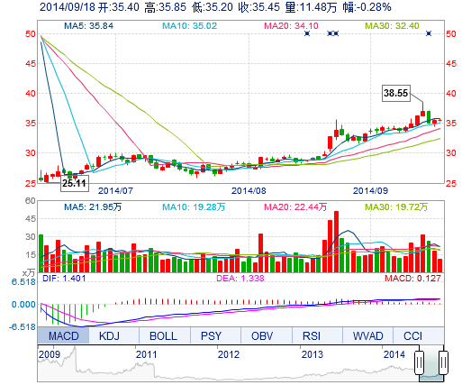 | 最 低: | 35.20 | 總市值: | 232.15億 | 市凈率: | 13.65 |