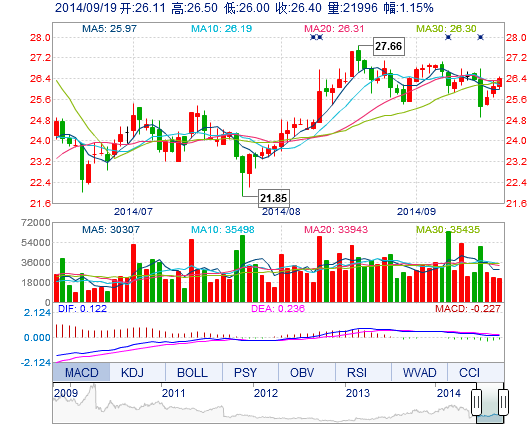 今開: 26.11 成交量: 2.20萬手 振幅: 1.92% 最高: 26.50 成交額: 5803.08萬元 換手率: 0.42% 最低: 26.00 總市值: 172.51億 市凈率: 9.49 昨收: 26.10 流通市...