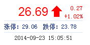 | 今 開: | 26.42 | 成交量: | 3.03萬手 | 振 幅: | 1.51% |