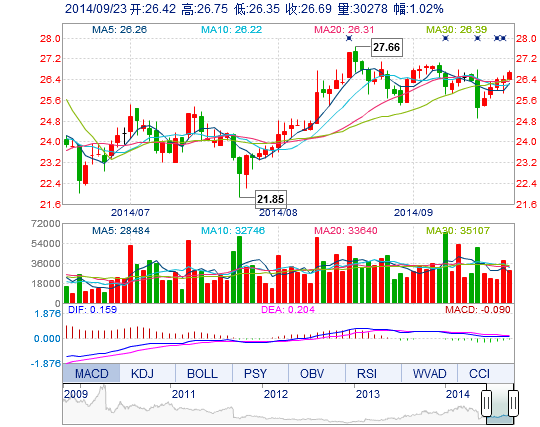 | 最 低: | 26.35 | 總市值: | 174.41億 | 市凈率: | 9.59 |