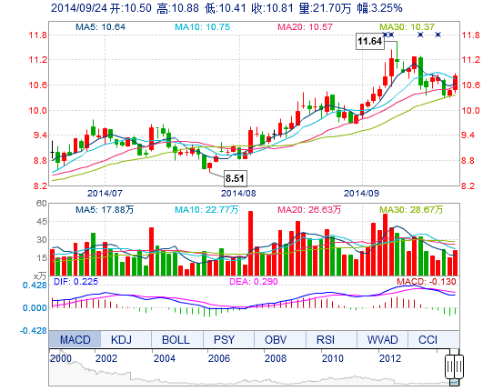今開: 10.50 成交量: 21.70萬手 振幅: 4.49% 最高: 10.88 成交額: 2.32億元 換手率: 2.44% 最低: 10.41 總市值: 96.33億 市凈率: 3.56 昨收: 10.47 流通市值...
