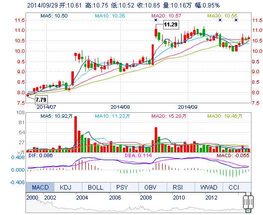 今開: 10.61 成交量: 10.16萬手 振幅: 2.18% 最高: 10.75 成交額: 1.08億元 換手率: 2.33% 最低: 10.52 總市值: 46.52億 市凈率: 3.30 昨收: 10.55 流通市值...