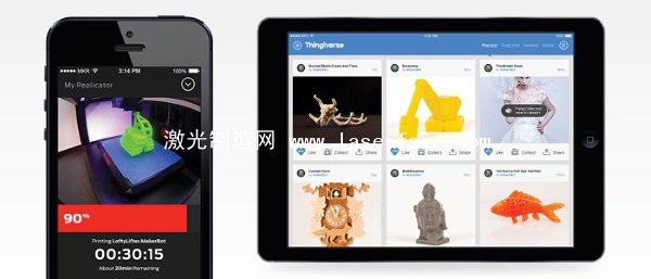 3、MakerBot公司宣布推出Mobile True Remote Printing and Monitoring應(yīng)用,該應(yīng)用旨在通過(guò)WiFi或手機(jī)網(wǎng)絡(luò)實(shí)現(xiàn)對(duì)第五代MakerBot Replicator 3D打印機(jī)的隨時(shí)隨地完全控制和監(jiān)視。該功能將在2015年年初上市。